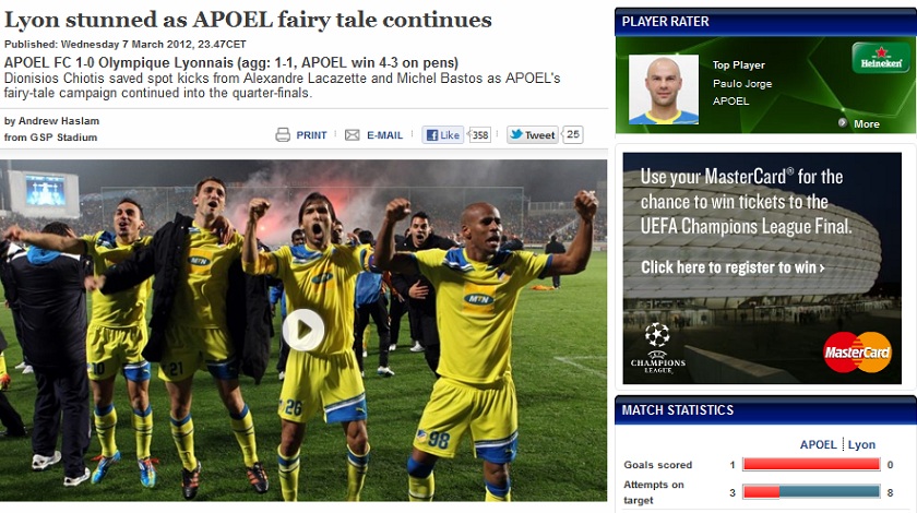 uefa.com: «Το παραμύθι του ΑΠΟΕΛ συνεχίζεται…